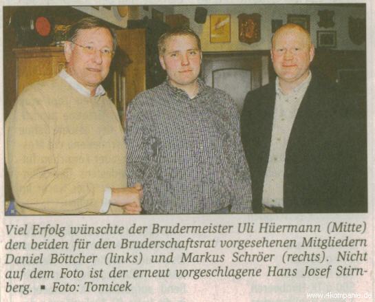 Daniel Böttcher gewählt - Markus Schröer und Hans Josef Stirnberg im Bruderschaftsrat